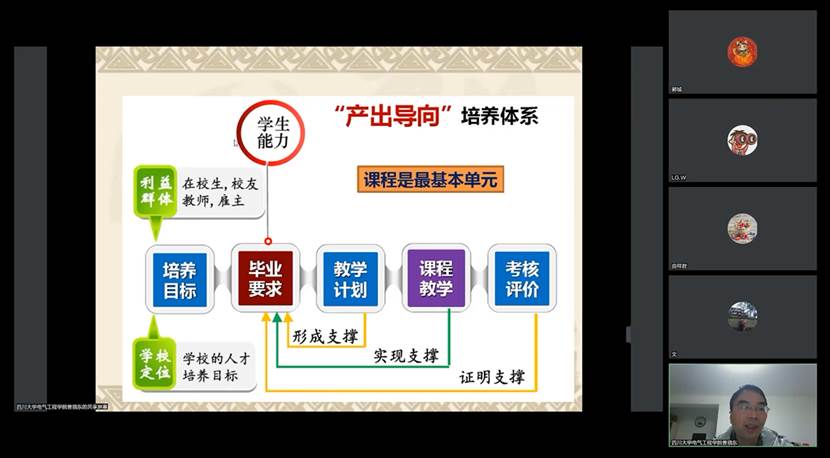 会上,曾晓东老师结合自身工程教育专业认证工作经历,从“如何准备工程教育认证”、“课程目标达成评价”等两个方面做了详细介绍。曾晓东老师先介绍了工程教育专业认证的基本理念以及认证标准的逻辑关系,准确阐述了工程教育专业认证做什么、如何开展工程教育专业认证、如何构建OBE模式教学体系。接着,曾晓东老师以自身教学实际情况为例介绍了课程目标达成评价机制以及在日常教学工作中如何做好课程目标支撑。