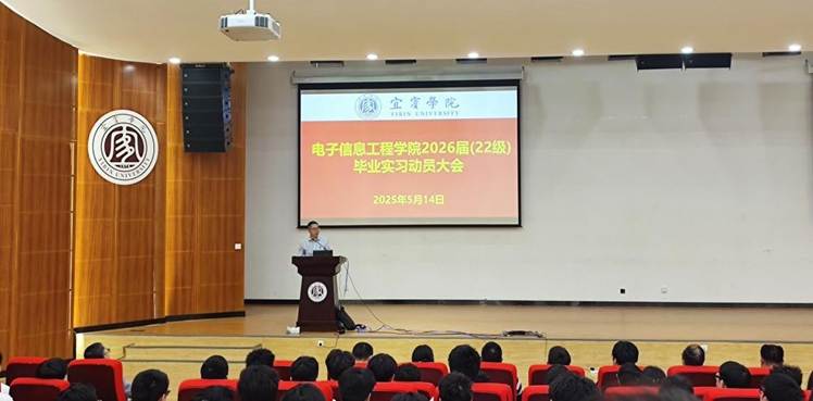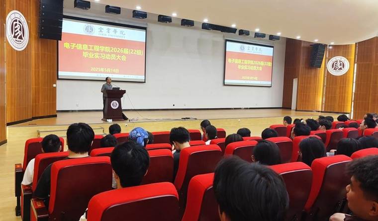 2025年5月14日,电子信息工程学院在临港校区一期求是会堂召开2026届(2022级)毕业实习动员大会。学院党委书记贺繇、院长文良华出席,全体带队指导教师、教学办学工办有关教师、2022 级全体学生参加大会,会议由副院长李庆主持。