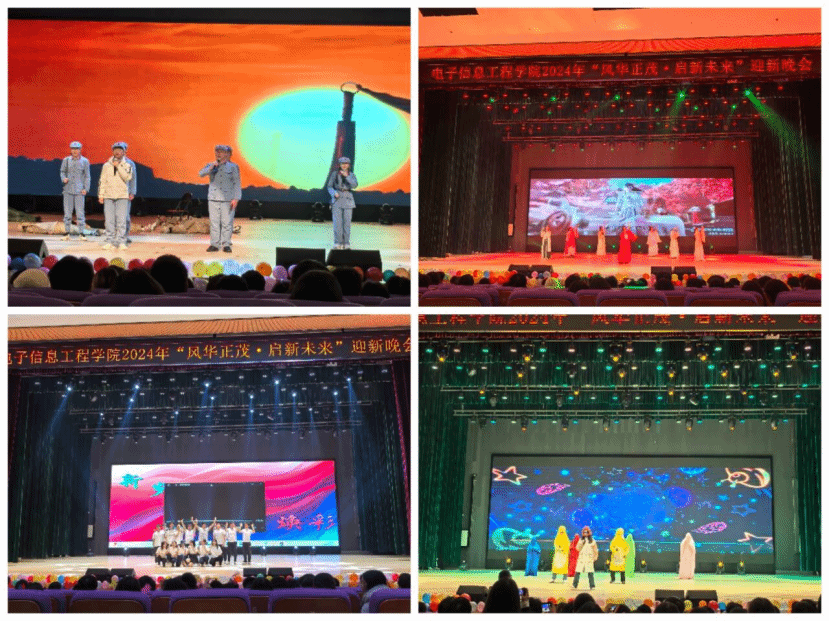 为丰富校园文体活动,促进学生德智体美劳全面发展,2024年12月1日19:00,电子信息工程学院在宜宾学院临港校区二期开放会堂举办宜宾学院周末大舞台暨电子信息工程学院“风华正茂,启新未来”2024年迎新晚会,欢迎2024级新生的到来,庆祝即将到来的2025新年。电子信息工程学院党委书记贺繇、院长文良华、专职辅导员及任课老师与2024级新生们齐聚一堂,共享视听盛宴,共迎新起点。