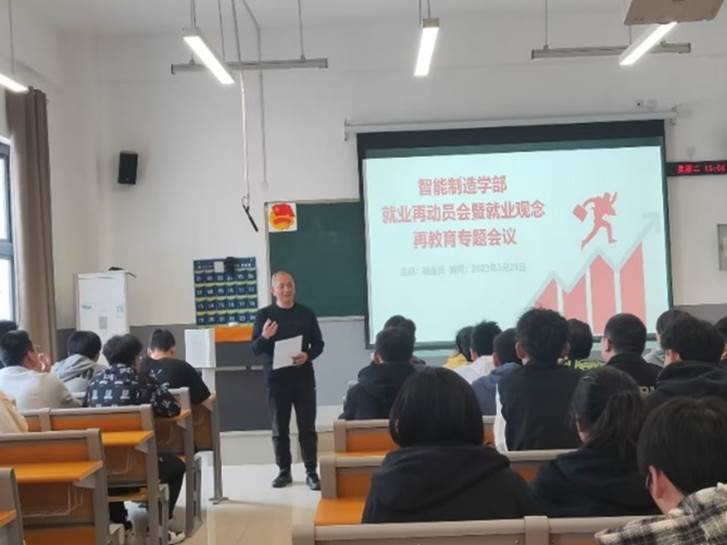 为深入贯彻落实习近平总书记来校视察重要指示精神和党的二十大精神,2023年3月21日至28日,智能制造学部召开2023届毕业生就业再动员和就业观念再教育系列专题会议,系统推进就业工作。会议由学部党总支书记许泽宏,副部长(负责工作)文良华,正处级组织员杨随军、杨金云,副部长魏康林等分场次主讲,毕业班班主任何宾、田蜜及学部2023届全体在校毕业生参会。