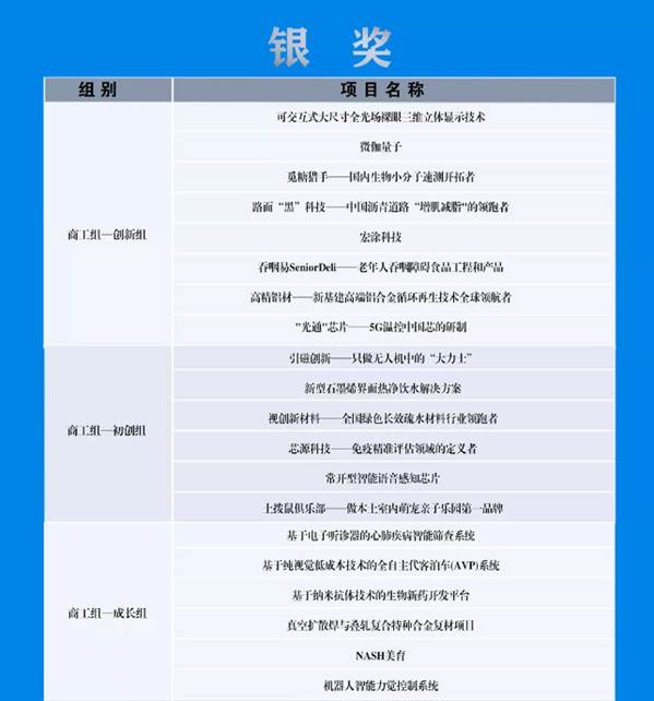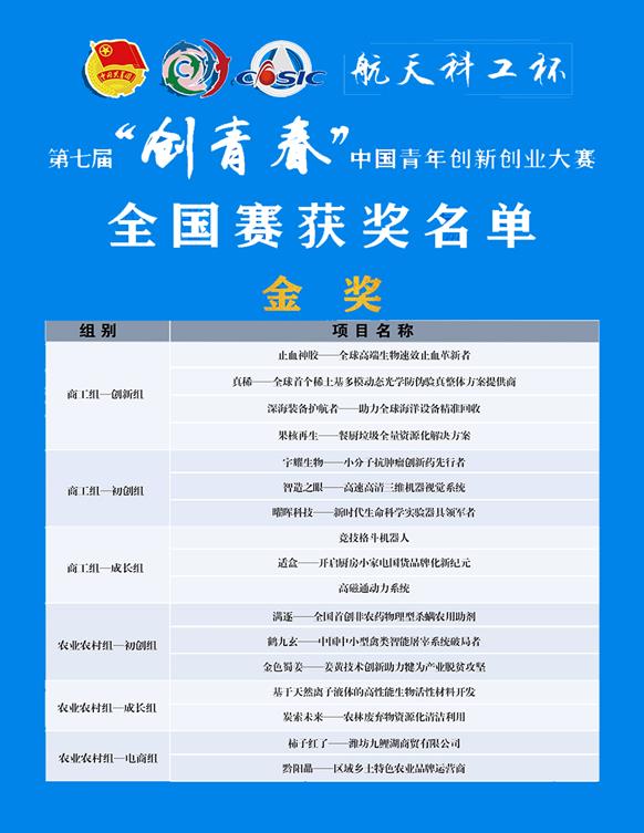航天科工杯第七届创青春全国比赛金银奖名单