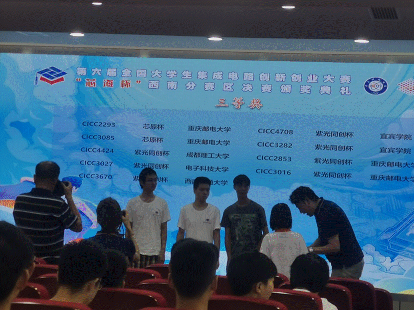 全国大学生集成电路创新创业大赛以服务产业发展需求为导向,以提升我国集成电路产业人才培养质量为目标,打造产学研用协同创新平台,将行业发展需求融入教学过程,提升在校大学生创新实践能力、工程素质以及团队协作精神,助力我国集成电路产业健康快速发展。大赛西南赛区吸引了来自四川、重庆、云南、贵州等西南片区的36所高校,580余支队伍,超1700人报名参赛,再创历史新高。最终有217支队伍脱颖而出,成功进入西南赛区决赛,决赛答辩采用线上、线下方式同步进行。经过实物演示、现场答辩、专家提问等环节激烈竞争,我学部选派的2支队伍最终荣获紫光同创杯三等奖。实现我学部在该竞赛的零突破。