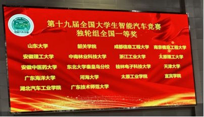 2024年8月19日至22日,全国大学生智能汽车竞赛全国总决赛在哈尔滨工程大学隆重举行。本届大赛吸引全国538所高校、3400余支队伍参赛,最终选拔出清华大学、哈尔滨工业大学、华中科技大学、宜宾学院等全国250余所高校的524支队伍进入全国总决赛。我校学子与全国985、211高校同台竞技,最终暂获全国总决赛NXP组、独轮组一等奖2项,越野组二等奖1项。这是自2019年我校开始参加该项赛事以来,第一次荣获全国一等奖,取得重大突破!