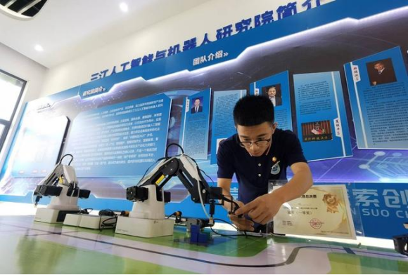 6月8日下午,习近平总书记来到宜宾学院考察调研,察看毕业生创新创业代表作品展示,了解学校开展就业创业指导服务工作。宜宾学院三江人工智能与机器人研究院竞技机器人团队成员、电子信息与科学与技术专业大四学生冯帅,向总书记介绍了他们开展创新的情况。10日上午,冯帅带着记者走进了他们的实验室,并介绍了向总书记展示的作品。
