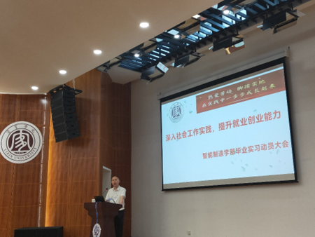 6月13日中午,智能制造学部在求是会堂召开实习动员大会。学部党总支书记许泽宏,副部长(主持工作)文良华,副部长魏康林,2019级350余名学生及各班班主任参加会议,会议由朱友杰老师主持。