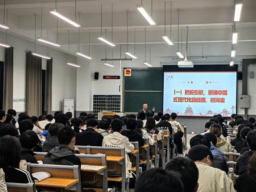 易炳平在宣讲中说,党的二十届三中全会是在以中国式现代化全面推进强国建设、民族复兴伟业的关键时期召开的一次十分重要的会议,是在新的历史起点上进一步全面深化改革、推进中国式现代化的总动员、总部署,全会最重要的成果是审议通过了《中共中央关于进一步全面深化改革、推进中国式现代化的决定》。他用“银河号”、“美国轰炸中国驻南联盟大使馆事件”等典型事件向同学们介绍我国进行强国建设的重要意义和实现民族复兴伟业的坚定决心,勉励同学们既要抬头看路、仰望星空,关心国家大事和国际局势,又要脚踏实地、积极进取,将小我融入国家发展的大我之中,为实现中华民族伟大复兴伟业贡献自己的力量。