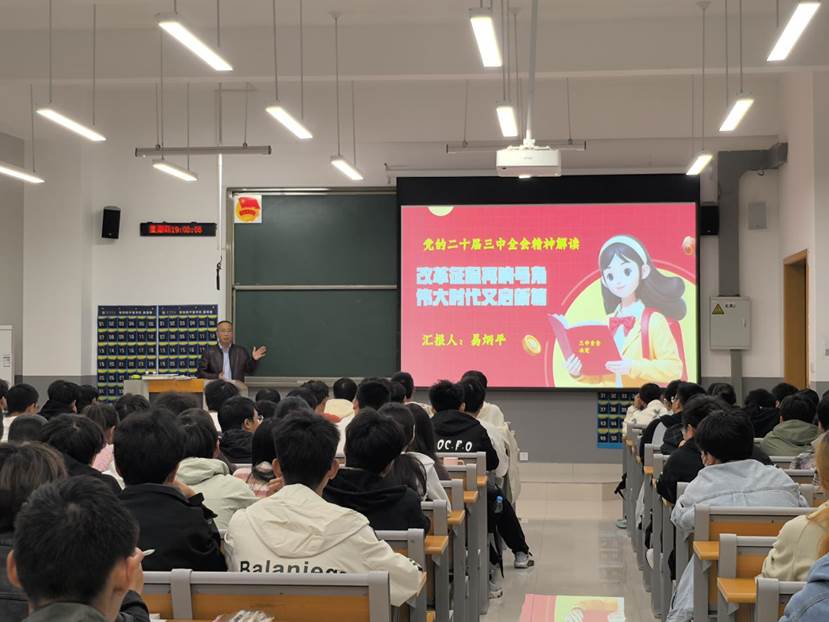 宣讲会上,易炳平以“改革征程再响号角 伟大时代又启新篇”为题,重点从“深刻把握党的二十届三中全会的重大意义”、“深刻把握进一步深化改革的总体要求和系统部署”,全面深入向青年学生解读党的二十届三中全会精神。