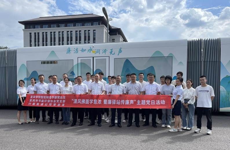 9月13日,宜宾学院智能制造学部党总支、宜宾市节能环保行业协会党支部联合四川川南轨道交通运营有限公司党总支共同开展“清风拂面学意浓 蜀廉驿站传廉声”主题党日活动,组织师生党员、干部职工代表乘坐体验升级版“蜀廉号”智轨专列,参观蜀道智轨廉洁文化主题车站“蜀廉驿站”,观看《莫以贪腐赌未来》廉洁警示教育片,引导党员干部、职工、青年学生在交流学习、互动体验中进一步坚定理想信念,补足精神之“钙”,筑牢拒腐防变思想防线,扣好人生“第一粒扣子”。