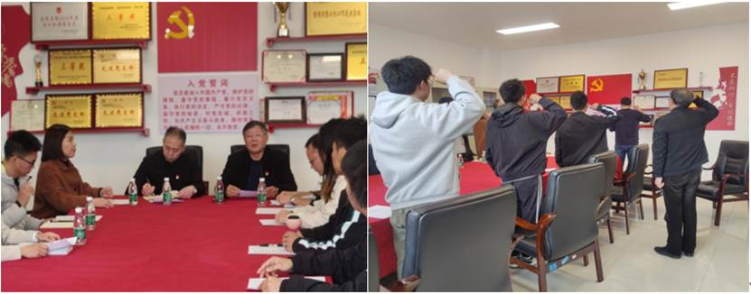 杨随军宣读党委决定,为新入党同志佩戴党徽。郑力带领预备党员面向党旗庄严宣誓,他们激情澎湃,用铿锵有力的宣誓声表明他们报效祖国,为人民服务的决心。姚杰代表预备党员发言,代表新加入党组织的同志表示将从理想、信念、工作、生活几个方面提出入党后新的标准和要求,表达了想要成为一名合格的共产党员和愿意为党的事业奋斗终生的决心。