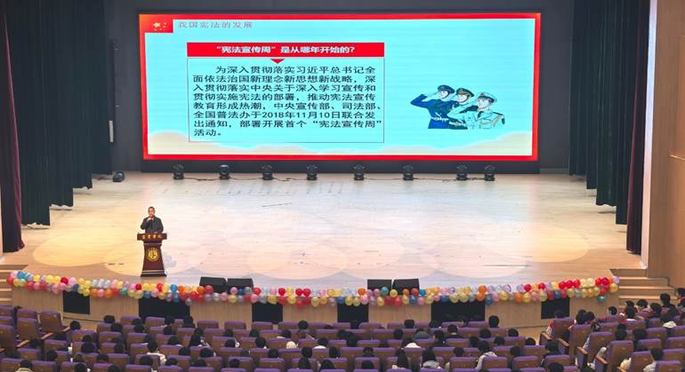 12月1日晚,电子信息工程学院党委书记贺繇在临港校区开放会堂给学院大一大二600余名学生开展宪法学习宣讲。重点宣传了习近平新时代中国特色社会主义思想特别是习近平法治思想,详细阐释了宪法的概念、特征及新中国宪法发展历程和宪法的地位作用,引导大家自觉尊崇宪法、学习宪法、遵守宪法、维护宪法、并运用宪法维护自身权益,为个人发展和社会和谐打下坚实基础,为全面依法治国和构建社会主义法治国家、法治社会汇聚起强大的法治力量。